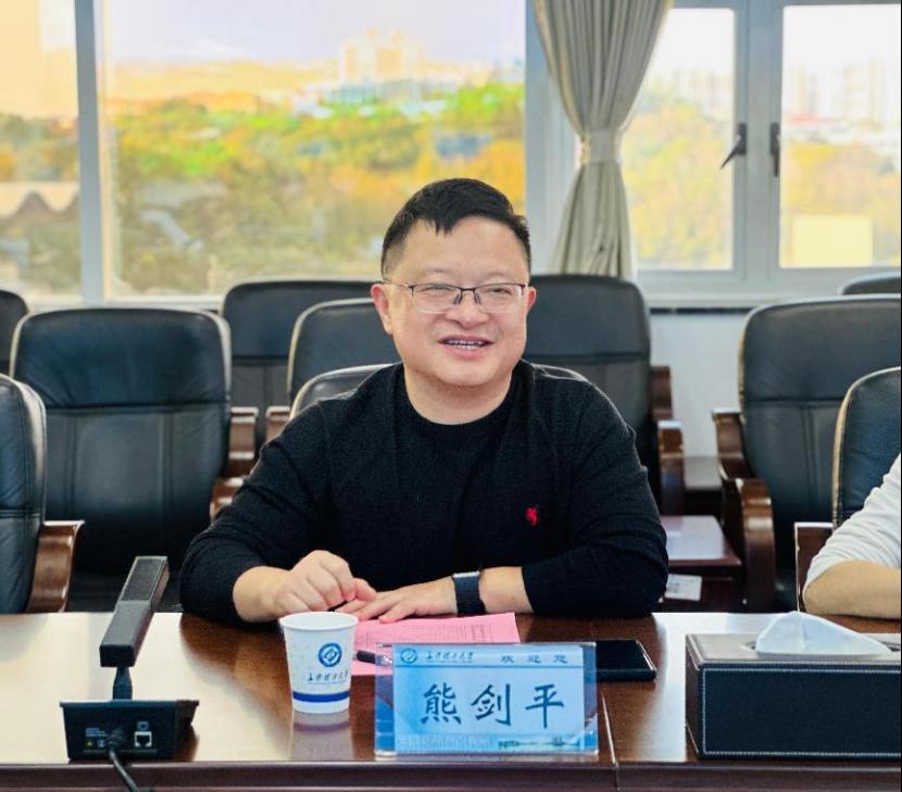 熊剑平非常感谢学校为集团公司培养了上百名优秀校友。他从广西新能源产业概况、广西交科新能源业务发展方向及现状、校企合作共赢三个方面详细介绍了目前广西交科新能源业务发展情况。希望积极探索人才联合培养模式,加强与学校在人才交流培养、交能融合高质量发展、科技成果转化及应用推广等方面的合作。