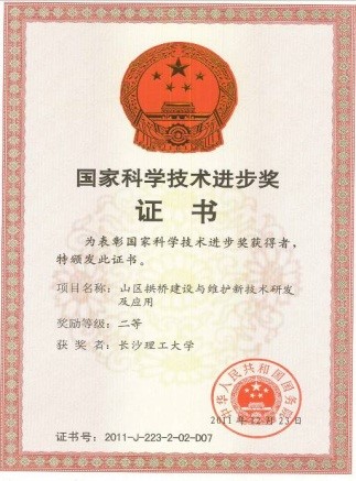 2)丰富和发展了混凝土桥梁施工期安全控制理论和关键技术,解决了一批具有世界影响的重大桥梁技术难题,产生了显著的经济效益和社会效益,主持获国家科技进步二等奖1项,参与获国家科技进步奖1项;
