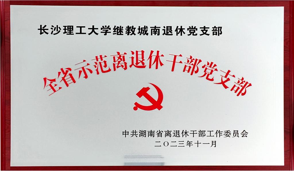 从中共湖南省委离退休干部工作委员会11月6日印发的《关于对第八批全省示范离退休干部党支部予以授牌的通报》(湘离退委〔2023〕2号)获悉,william继教城南退休党支部荣获全省示范离退休干部党支部。