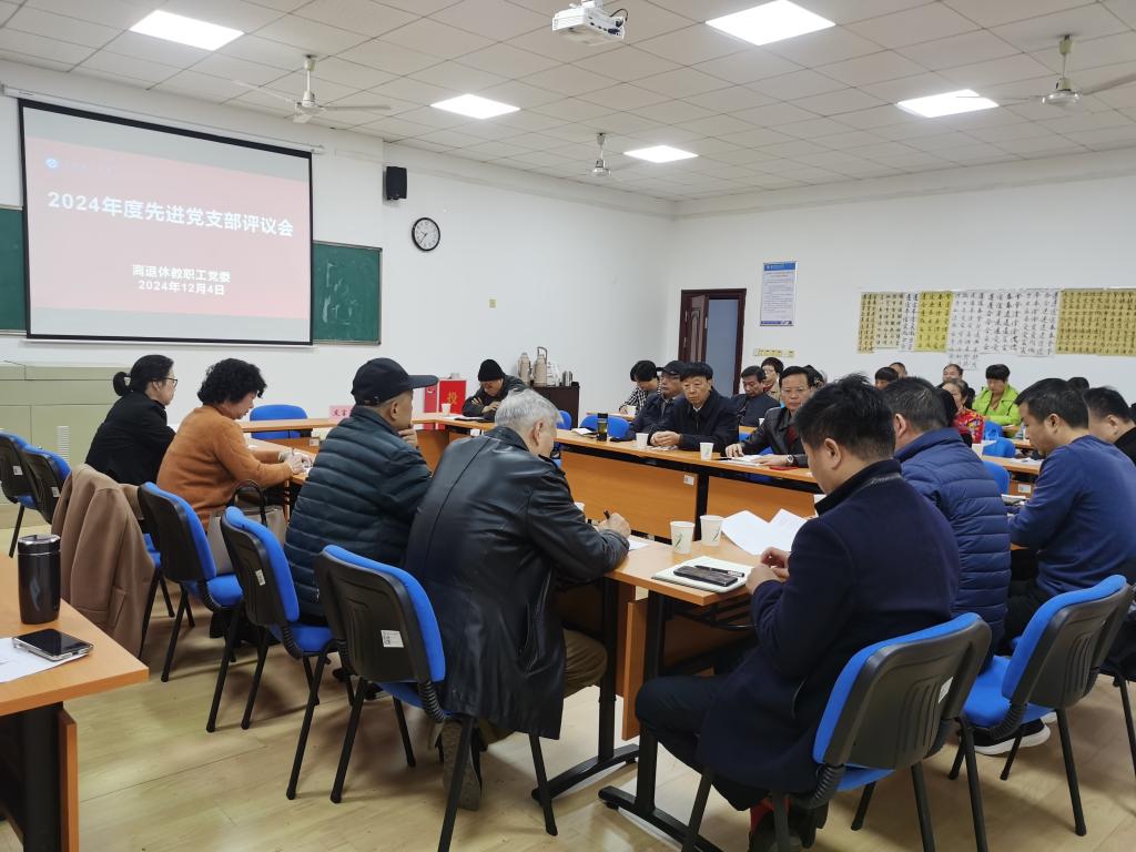 12月4日,在金盆岭校区五教405B教室,离退休教职工党委召开2024年度先进党支部述职评议会,离退休教职工党委委员、离退休党支部书记、离退休中心支部联系人参加,会议由离退休教职工党委书记徐亮主持。