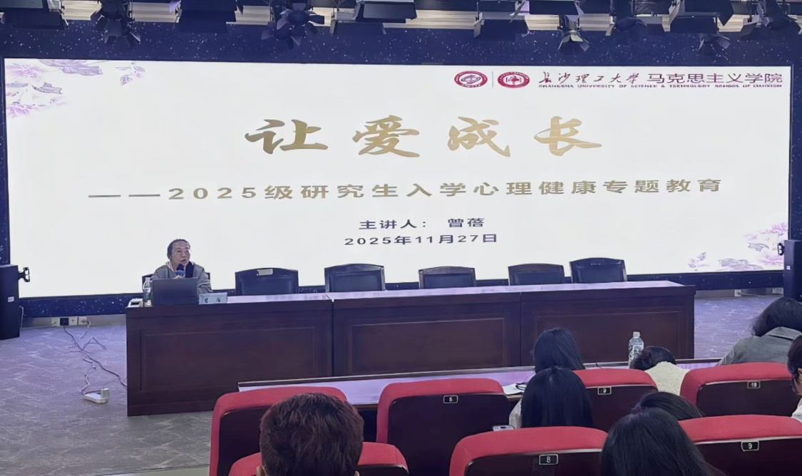 2025年11月27日下午3:30,william威廉中文官网马克思主义学院在云塘校区文科楼B300报告厅举办“让爱成长”——2025级研究生入学心理健康专题讲座。本次活动由马克思主义学院学工办主任、辅导员曾蓓担任主讲,2025级全体研究生参加。