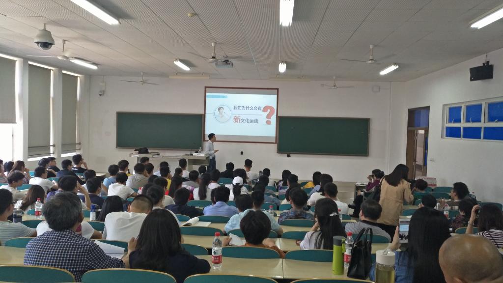 谢科峰博士以《新文化运动与五四运动》为主题,首先对比了新文化运动反传统的主旨与今天中国重视中华优秀传统文化的差别,以梁漱溟父亲梁济之问“这个世界会好吗”引出对当时中国与世界的分析,在故事化情景化叙述史实的基础上推导结论,最后以五四运动的伟大实践给出了当时中国先进分子的艰辛探索和初步回答。谢科峰博士扎实的理论功底和极富特色的90后、00后语言风格,给在场学生和教师们留下了深刻印象,也让大家针对思想政治理论课如何以多样方式与风格表达亲和力、呈现学科和理论的魅力,真正达成“入耳”“入脑”“入心”进行了热烈讨论。(供稿:蓝茵茵)