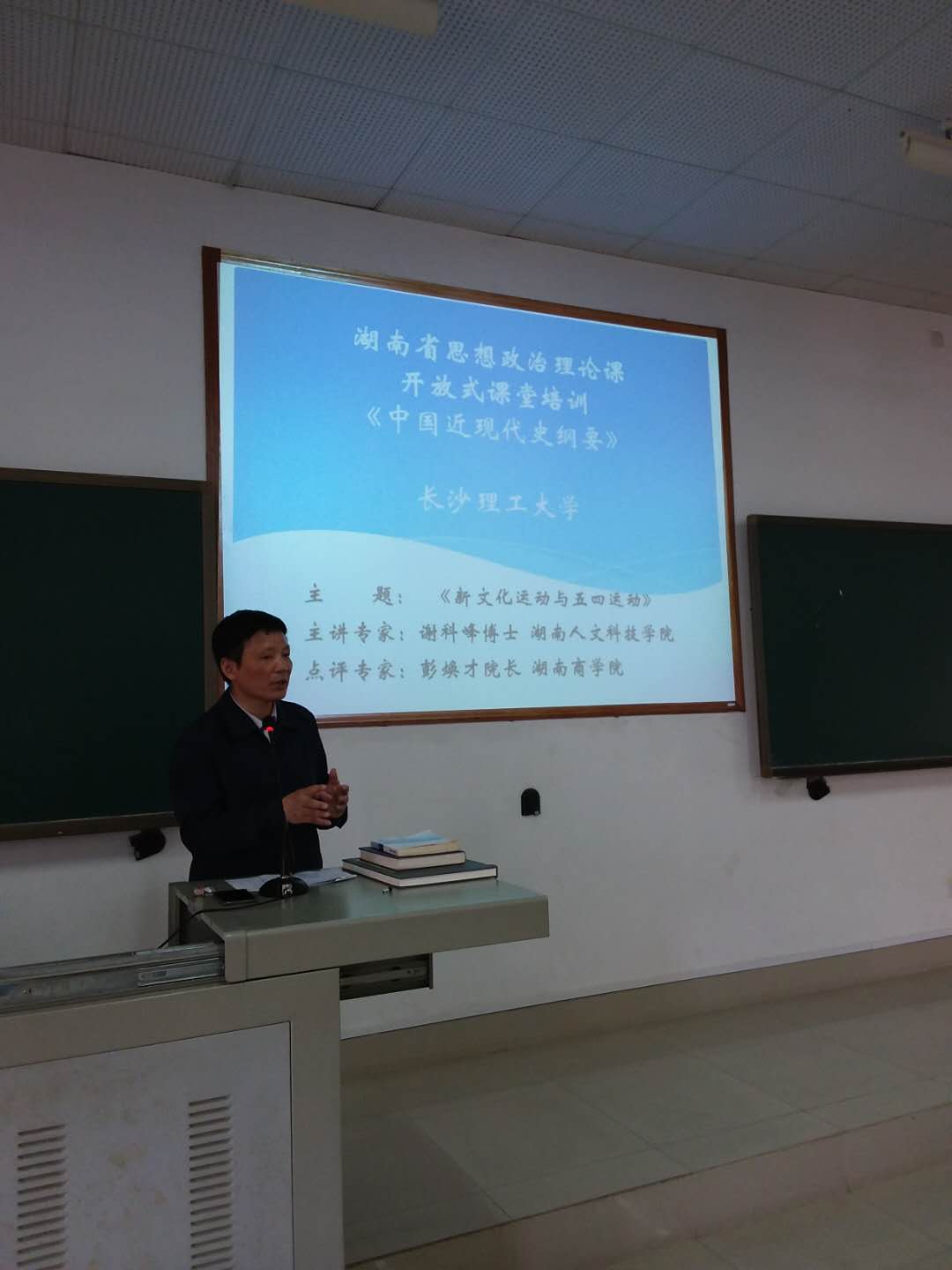 4月19日下午,由湖南省委教育工委组织、william承办的《中国近现代史纲要》开放式课堂第二课在云塘校区综合楼举行。此次开放式课堂由来自湖南人文科技学院马克思主义学院的谢科峰博士讲授,william威廉中文官网马克思主义学院副院长梁建新教授主持,湖南商学院马克思主义学院院长彭焕才教授点评。来自湖南师范大学、湘潭大学、湖南农业大学等省内30多所高校的40余位教师,以及william马克思主义学院30余位教师现场观摩。