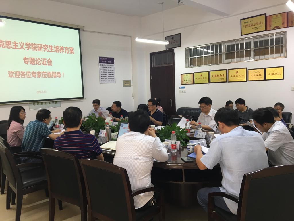 6月19日下午,我院马克思主义理论一级学科和哲学一级学科硕士研究生培养方案校外专家论证会我院会议室召开。湖南大学朱汉民教授,湘潭大学马克思主义学院长李佑新教授,浙江师范大学马克思主义学院院长李建华教授,湖南师范大学马克思主义学院院长吴家庆教授,华南理工大学肖峰教授以及william研究生院院长管德清教授应邀参加会议。会议由我院院长陈万球教授主持,学院党委书记易显飞教授及学院领导班子和两个一级学科点负责人、二级学科点的负责人参加了研讨。