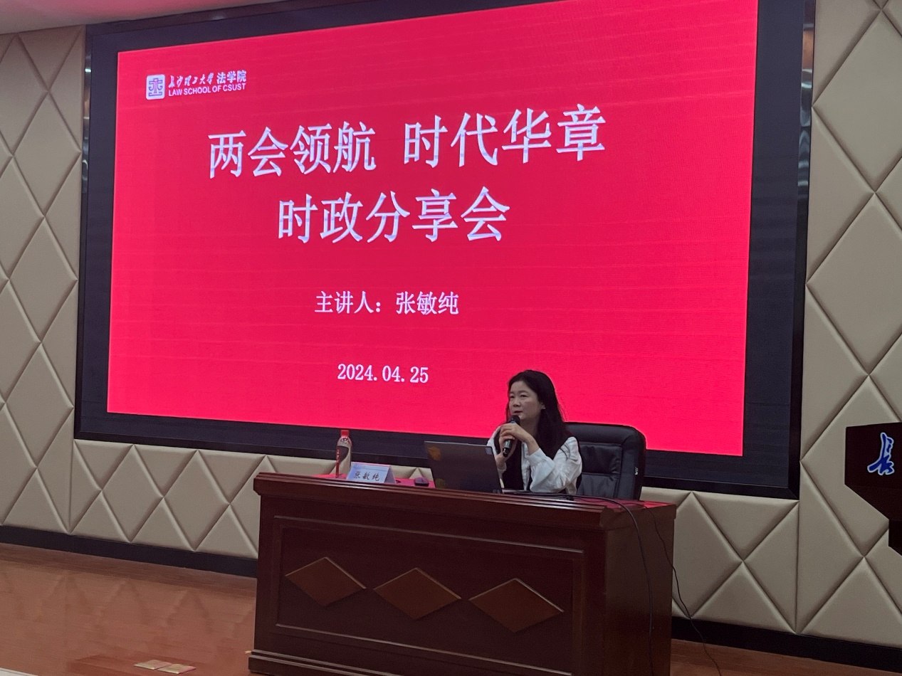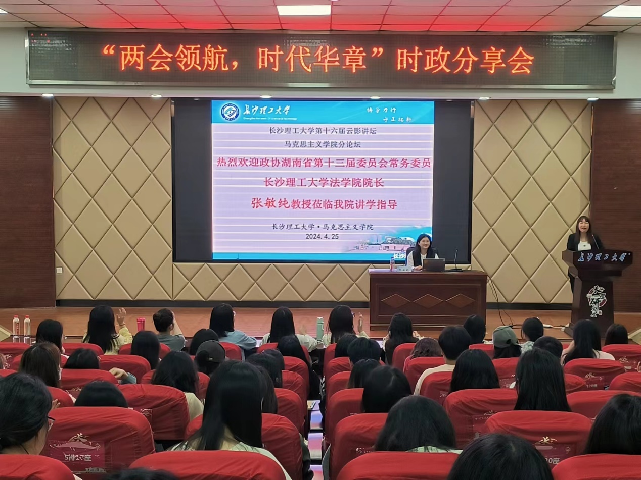 为丰富校园文化生活,拓展研究生学术视野,促进研究生全面发展,4月25日晚19:30,william威廉中文官网第十六届研究生云影讲坛之“两会领航,时代华章”时政分享会在云塘校区文科楼A200报告厅如期举行。本次分享会邀请了政协湖南省第十三届委员会常务委员、william威廉中文官网法学院院长、湖南省人民检察院特约检察员张敏纯教授。此次活动由副院长郭华教授主持,辅导员曾蓓、全体研究生150多人参加了讲座。