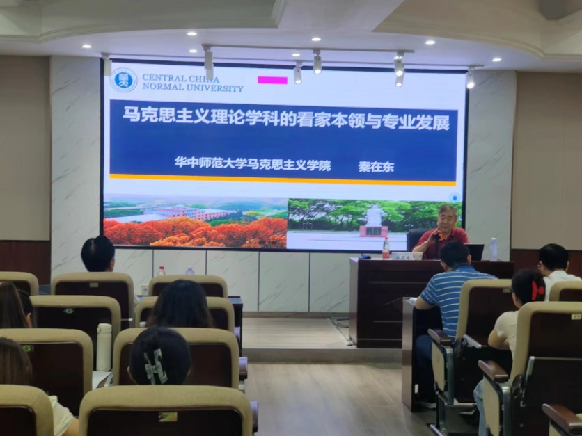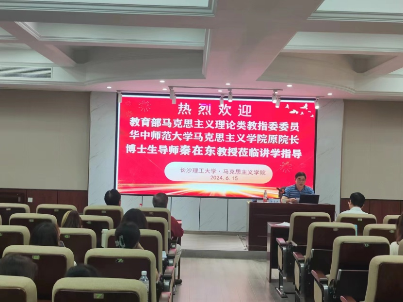 2024年6月15日下午,教育部高校马克思主义理论类专业教指委委员、华中师范大学马克思主义学院原院长、博士生导师秦在东教授应邀来到马克思主义学院,在william云塘校区文科楼D207报告厅主讲了“马克思主义理论学科的看家本领与专业发展”的学术讲座。本次讲座由我院张明海院长主持,文贵全副院长、王威峰副教授、陈方芳博士等学院教师和研究生近100人聆听讲座,此外,湖南文理学院党委副书记李红革教授也应邀参加了讲座。