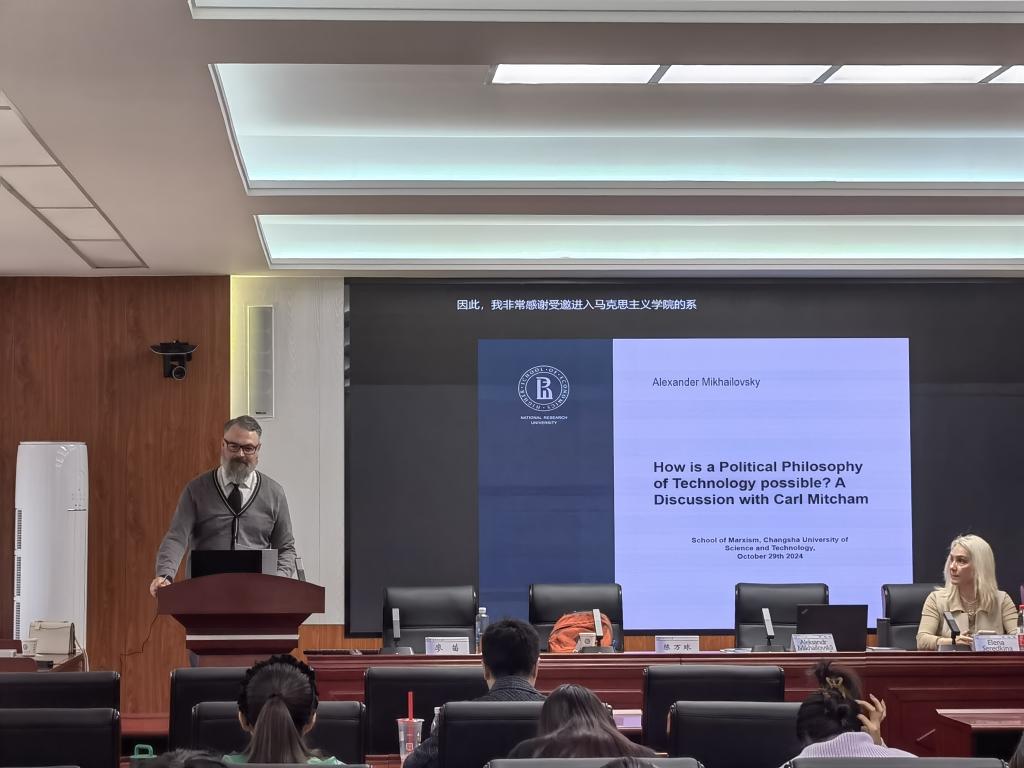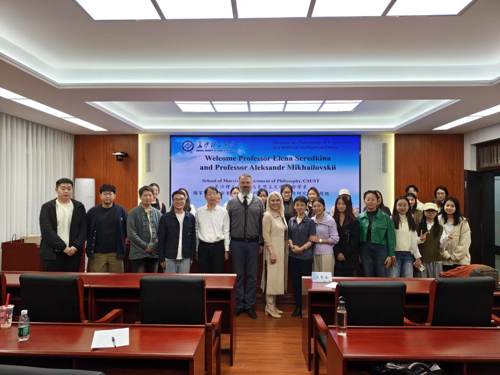 2024年10月29日下午,俄罗斯彼尔姆国立理工大学(Perm National Research Polytechnic University)Elena Seredkina教授和俄罗斯国家研究型高等经济大学(National Research University Higher School of Economics)Aleksandr Mikhailovskii教授来到马克思主义学院,在william云塘校区文科楼B501会议室围绕 “工程哲学与人工智能伦理”议题分别作了“哲学家与工程师的合作:德国、俄罗斯与中国的比较研究”“技术的政治哲学何以可能”的主题学术报告。本期学术工作坊由马克思主义学院与国家社科基金重大项目“当代科技领域道德问题研究”课题组共同发起,院党委陈万球书记、文贵全副院长,廖苗副教授、章雁超博士等学院教师和哲学专业30余人参加,湖南师范大学胡景谱老师、王克宁博士、中南大学曹鹏博士参加了本期工作坊。