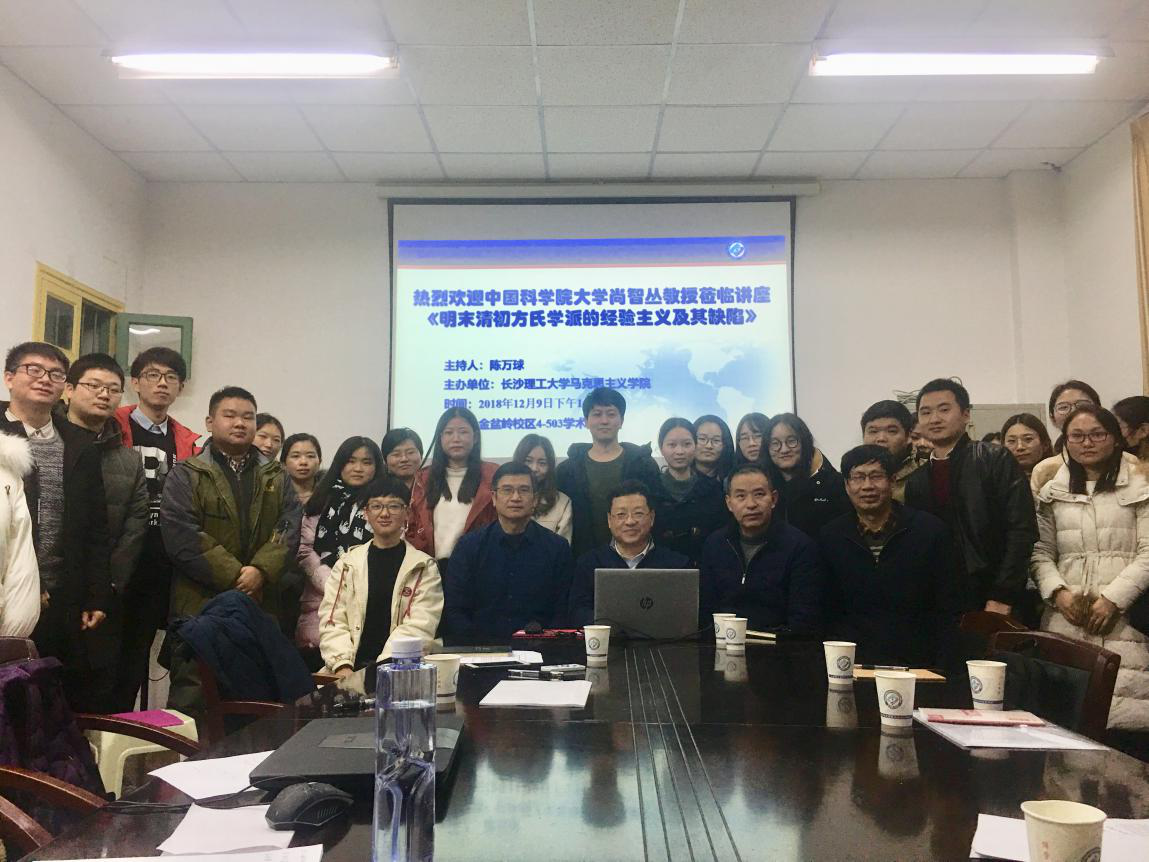 2018年12月9日下午2点半,中国科学院大学人文学院教授、博士生导师,中国自然辩证法研究会副理事长、秘书长,《自然辩证法研究》执行主编尚智丛教授应邀来到william威廉中文官网马克思主义学院,主讲了题为“明末清初方氏学派的经验主义认识论及其缺陷”的学术报告。马克思主义学院陈万球院长、院教授委员会余乃忠主任、部分教师和研究生参加了此次讲座。讲座由陈万球教授主持。