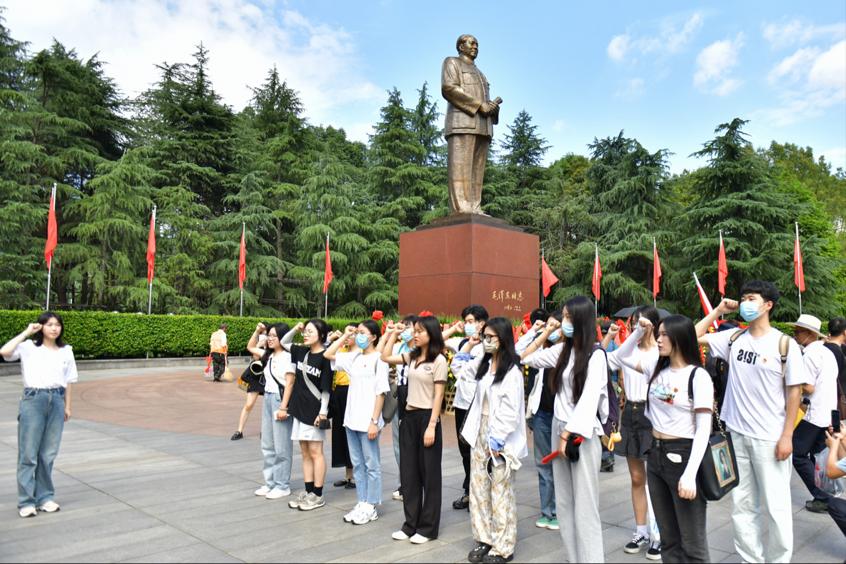 上午,党员们来到韶山毛泽东同志铜像广场前庄严肃立,鞠躬致敬,缓步环绕铜像一周后献花缅怀。在学生党支部书记孙淑雅的带领下,全体党员重温入党誓词,坚定入党初心,承诺永葆党员本色。随后,大家在讲解员的引领下,先后参观了毛泽东故居、毛泽东纪念馆、毛泽东同志生平展馆和毛氏宗祠。参观过程中,党员们认真聆听、用心感受陈列的历史文物、珍贵图片和故居内景,体会毛泽东和革命先辈们艰苦奋斗、无私奉献的一生,进一步筑牢理想信念、坚定初心使命。