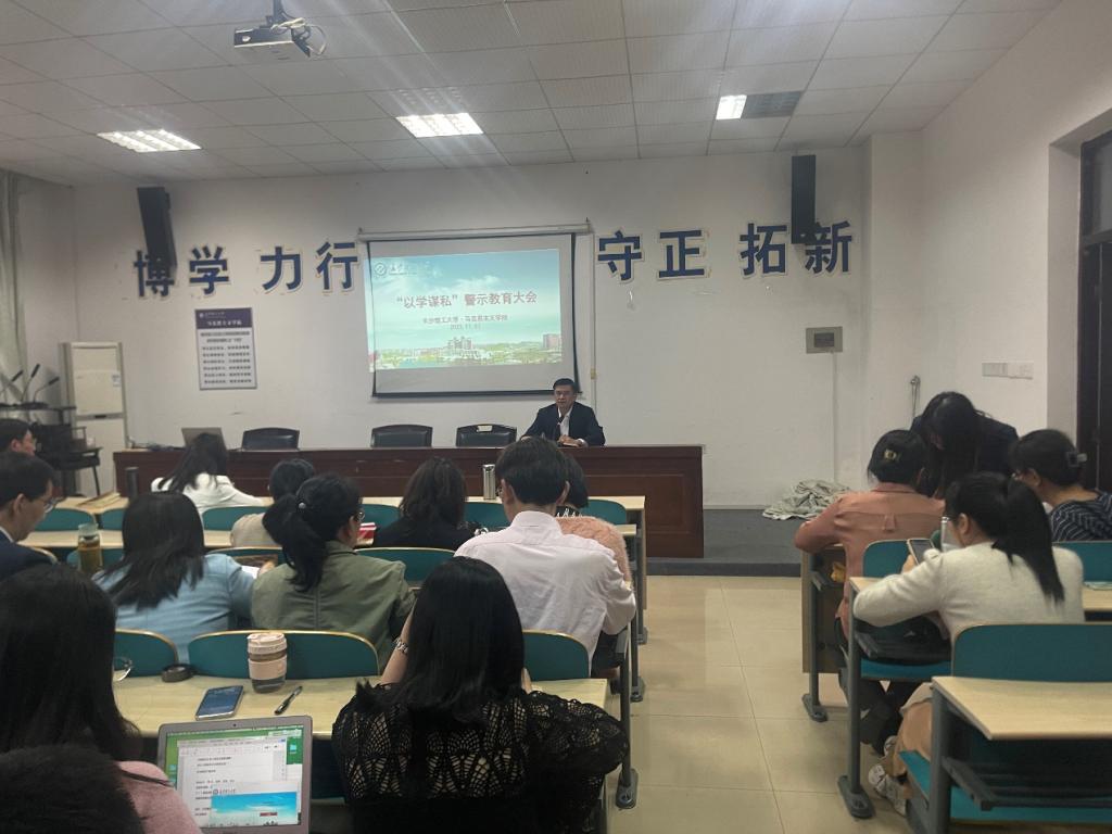 为切实增强全体教职工清廉意识,营造风清气正的从教环境,强化教师的责任担当,william威廉中文官网马克思主义学院于2023年11月7日下午2点,在云塘校区文科C202室召开“以学谋私”警示教育大会。会议由学院党委书记陈万球教授主持,学院全体教职工参加。