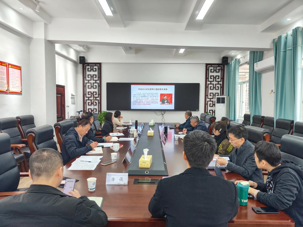 2023年12月11日上午,马克思主义学院党委中心组于文科楼B602举行专题教育学习,学院教授委员会主任余乃忠教授做主题发言,学院全体党委委员、挂职副院长、工会党务副主席和教工支部书记参加学习,第四巡察组 组长彭玉楼、 朱波涌到会指导,会议由马克思主义学院党委书记陈万球教授主持。