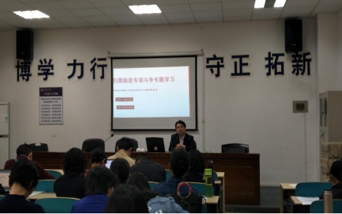 2019年4月16日下午14:00,马克思主义学院党委组织全院教师在云塘校区文科楼C202进行了“扫黑除恶专项斗争”专题党课学习,此次专题学习由学院党委书记易显飞教授主讲。