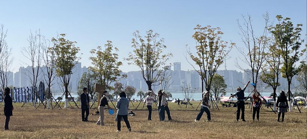 下午的环湖徒步和骑行活动在冬日暖阳中火热进行。全程约10公里的环湖路线串联起松雅湖金沙银滩、楚帛广场、关羽广场、松雅书院、书韵溪谷、水杉森林、国际友谊林等人文和自然景观。老师们或骑行,或徒步,走走停停,拍照打卡,沿途欣赏湖光山色,感受生态环境建设成就,领悟新时代美好生活。