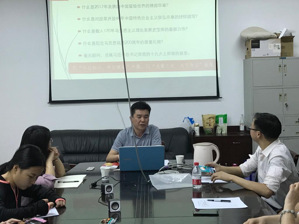 2018年5月8号晚七点,“纪念马克思诞辰200周年暨共产党宣言发表170周年”系列讲座第五场在william威廉中文官网金盆岭校区4教503室隆重举行。william威廉中文官网校党政办副主任艾楚君副教授为马克思主义学院师生带来了一场主题为“让担当更有力,让青春更绚丽”的精彩学术讲座,全院师生共四十余人参加,会议由马克思主义学院副院长李雨燕副教授主持。