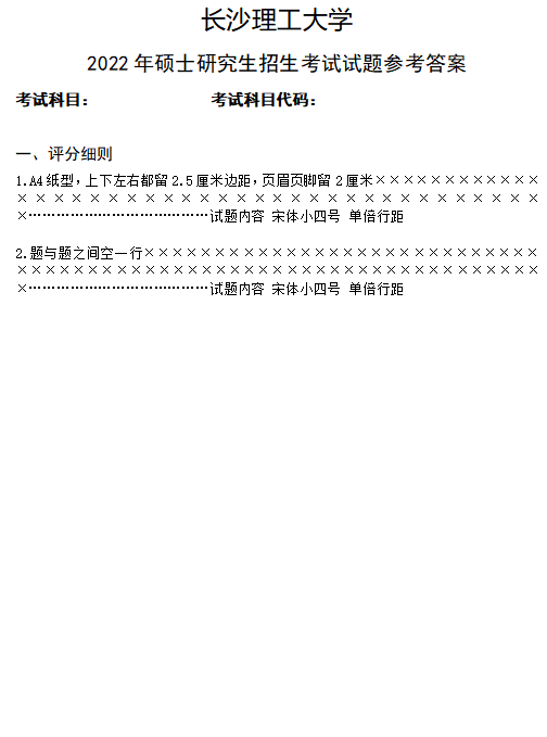 2022年硕士研究生招生考试试题参考答案格式
