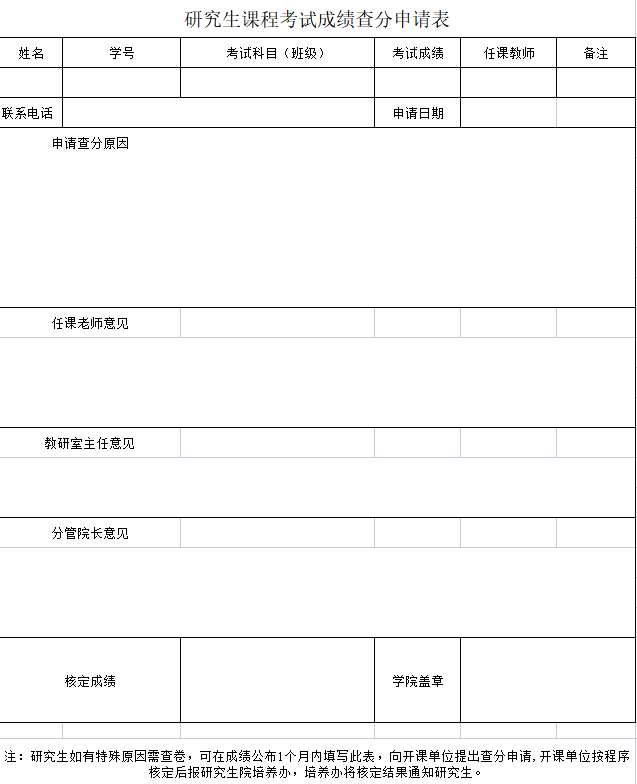 研究生课程考试查分申请表