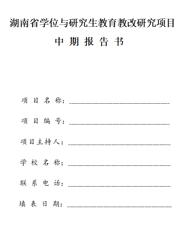 湖南省学位与研究生教育教改研究项目中期报告书