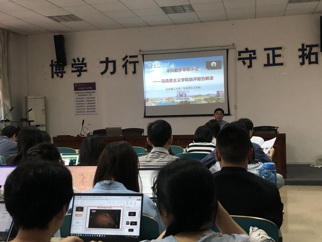 会议伊始,张明海院长对马克思主义学院本科教学审核评估自评报告进行了全面深入地解读,并介绍了本次教学评估的时间安排和其它重要事项。随后,平伟军主任对线上线下师生访谈的注意事项进行了详细说明。郭华副院长提醒老师们要高度重视教学评估工作,深刻领会本科教学审核评估的重要性,以评促建,继续打磨课堂,优化教学大纲等教学文档,进一步提升课堂教学质量。
