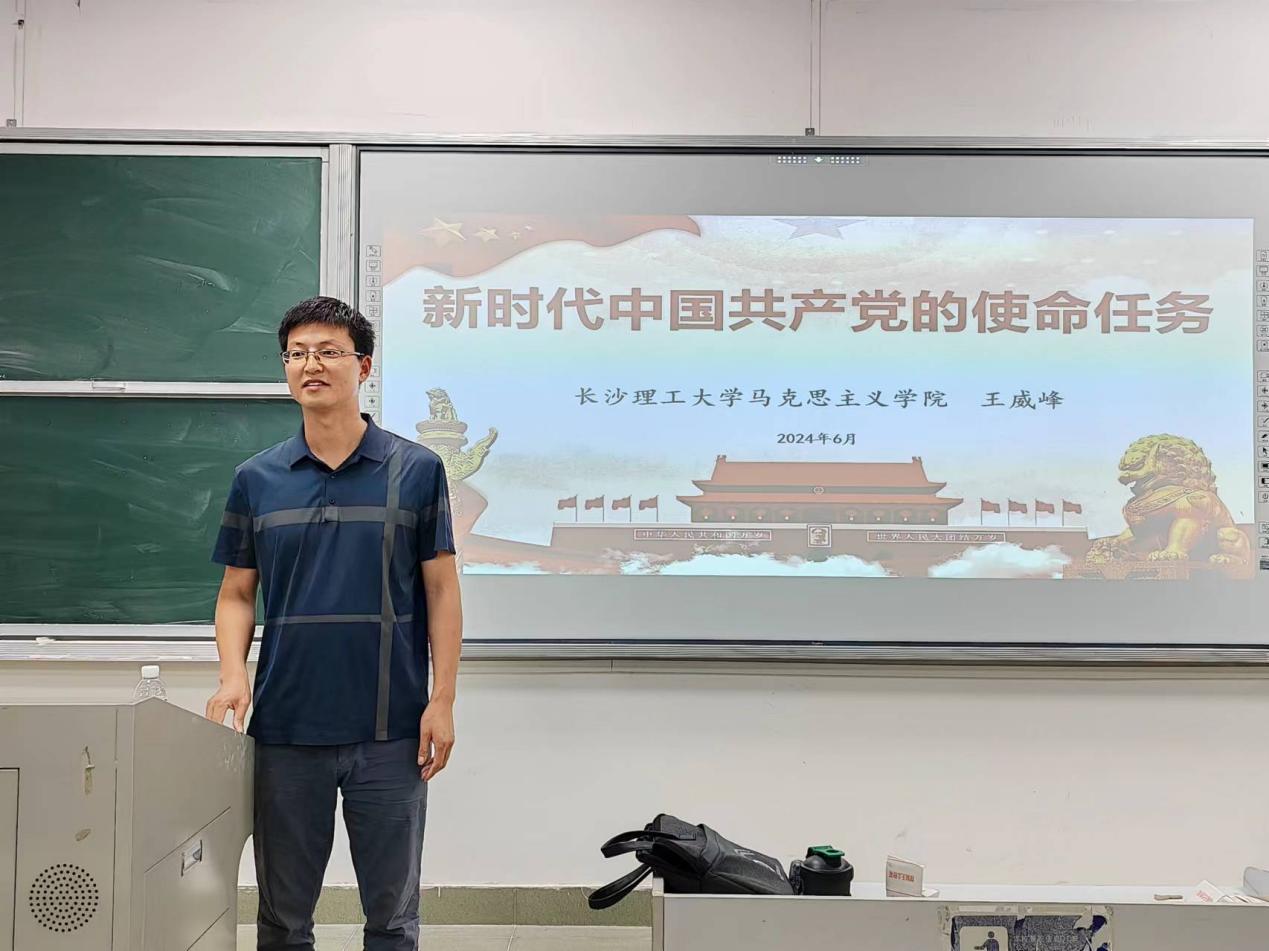 2024年6月26日晚上7:30,在金盆岭6-201室,马克思主义学院王威峰副教授开展了题为“新时代中国共产党的使命任务”通识教育讲座。