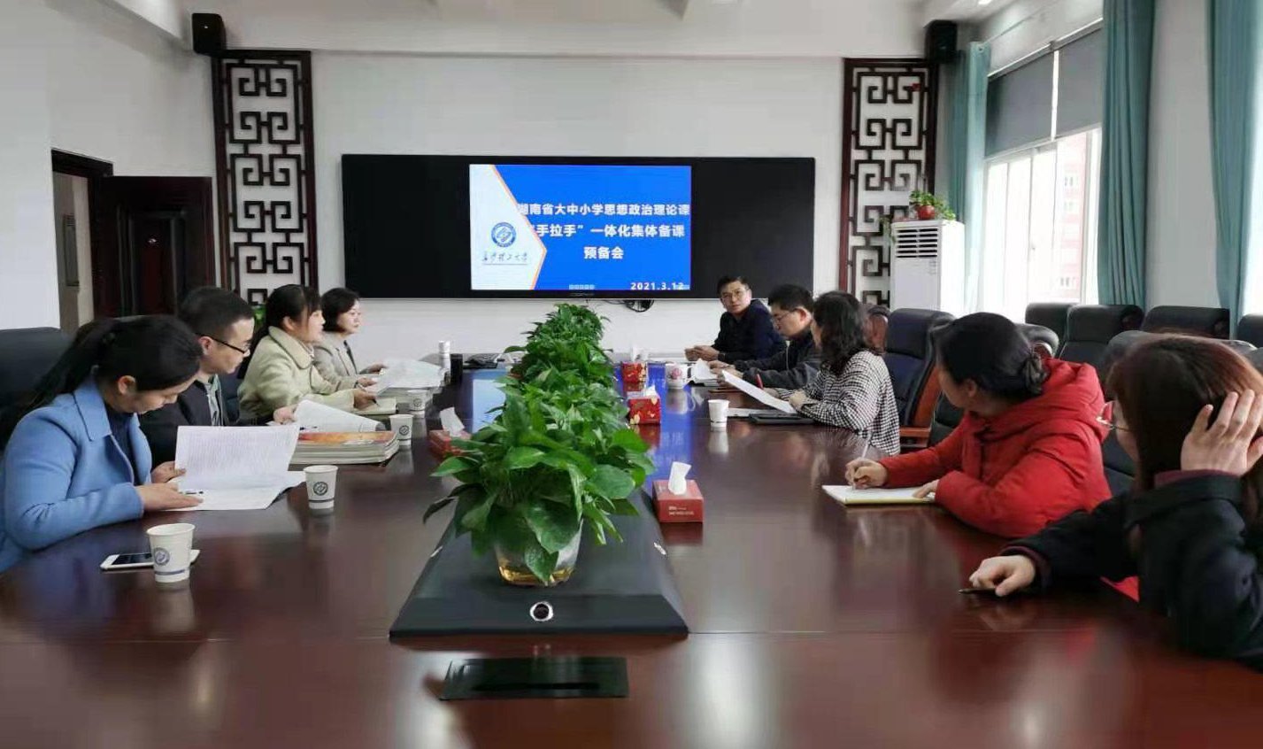 为深入学习贯彻习近平总书记在学校思想政治理论课教师座谈会上的重要精神、推动习近平新时代中国特色社会主义思想进教材进课堂进学生头脑,大力推进我省大中小思政课一体化建设,并且传达湖南省教育厅文件精神,william威廉中文官网马克思主义学院于2021年3月12日下午两点半,在云塘文科楼六楼马克思主义学院会议室召开关于开展大中小学思想政治理论课“手拉手”一体化集体备课预备会。