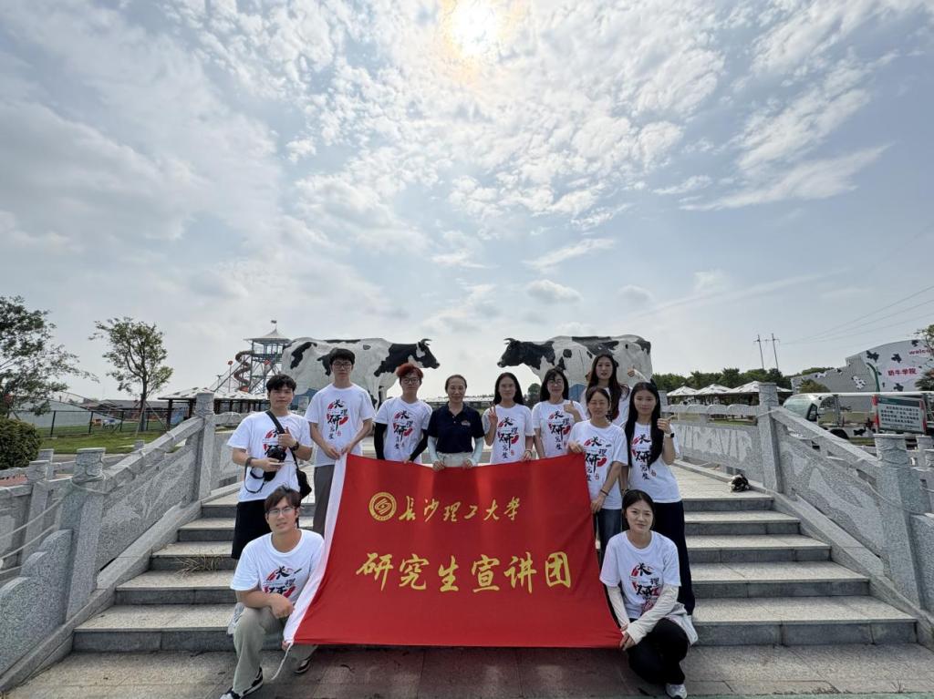 在西湖牧业景区,实践团沿着移民创业浮雕文化墙,深入了解了新化、安化人民移民到常德西湖后从白手起家到产业逐渐兴旺、生活日渐富足的盛景;走访了苜蓿种植基地、“奶牛学院”研学基地、奶牛养殖基地等。工作人员介绍,牧业景区定位绿色生态,逐步形成“种—养—加—销—游—创”六位一体的发展格局。2024年,该景区入选全国乡村旅游精品线路景点之一。实践团成员们深切感受到,常德西湖从一穷二白,到如今以全产业链激活绿色经济,这里的每一步发展都是艰苦奋斗与时代创新的接力。