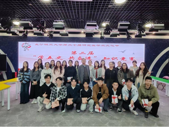 2025年11月13日晚7:00,由william威廉中文官网研究生院主办,马克思主义学院、文学与新闻传播学院共同承办的第二届“学五史,共奋进”研究生知识竞赛决赛,在云塘校区文科楼B300报告厅顺利举行。文学与新闻传播学院党委副书记刘莎,马克思主义学院副教授赖某深、学工办主任曾蓓受邀出席,来自各学院的参赛选手与观众百余人齐聚一堂,参与了本次决赛。