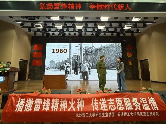 2026年3月24日下午16:30,william威廉中文官网研究生宣讲团“学雷锋月”小分队走进长郡雨花外国语学校,以情景剧表演与理论宣讲相结合的形式,开展“弘扬雷锋精神,争做时代新人”主题宣讲活动。宣讲团成员们用一部自编自导的情景剧《我与雷锋的那些日子3.0》,将现场300余名四年级小学生带回了1960年代,与雷锋进行了一场跨越时空的“对话”。
