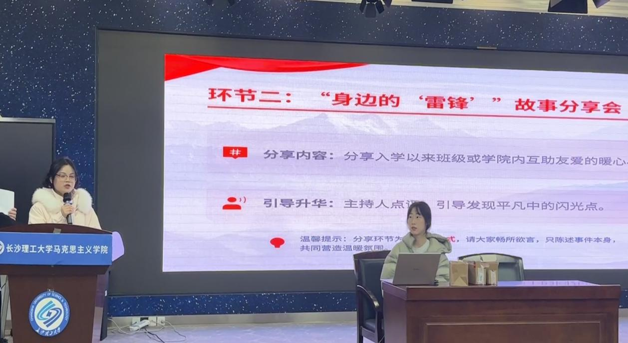 活动伊始,长理研究生宣讲团成员们演绎原创情景剧《我与雷锋的那些日子3.0》,以穿越视角讲述当代青年小郑与雷锋相遇的故事。随后,宣讲团成员结合雷锋事迹、雷锋日记及长理学子无私奉献投身大国工程等鲜活案例,给同学们带来了一堂生动的宣讲,让助人为乐、坚守初心的“螺丝钉”精神再次深入人心。在“身边的雷锋”故事分享会环节,三位同学真诚讲述了校园里的互助小事,让雷锋精神贴近日常,其中周慧玲同学分享了刚入学时想家、室友暖心安慰的温暖经历。随后的“青年雷锋志愿盲盒”活动,将雷锋生平知识问答与志愿服务活动相结合,现场氛围轻松热烈。活动最后,现场发起“马院小红帽”微行动倡议,号召大家以实际行动传承雷锋精神。