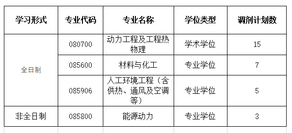 非全日制(能源动力):凡报考工科的学术型及专业型学位硕士研究生的考生,单科达到国家规定的复试线(A类地区),总分达到学校划定的分数线282分,符合国家调剂政策,如有意愿,均可申请调剂到我院相关专业。