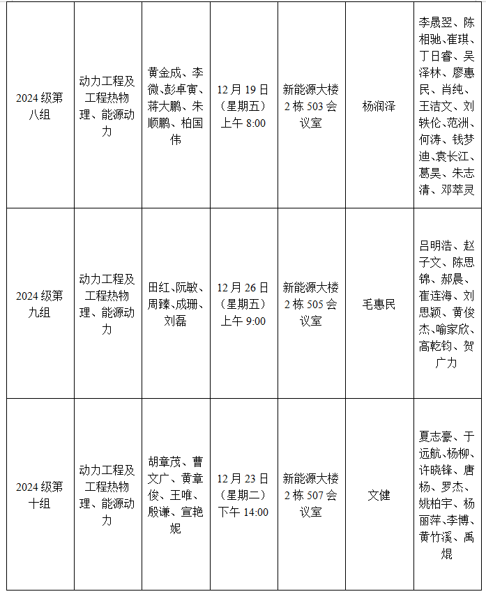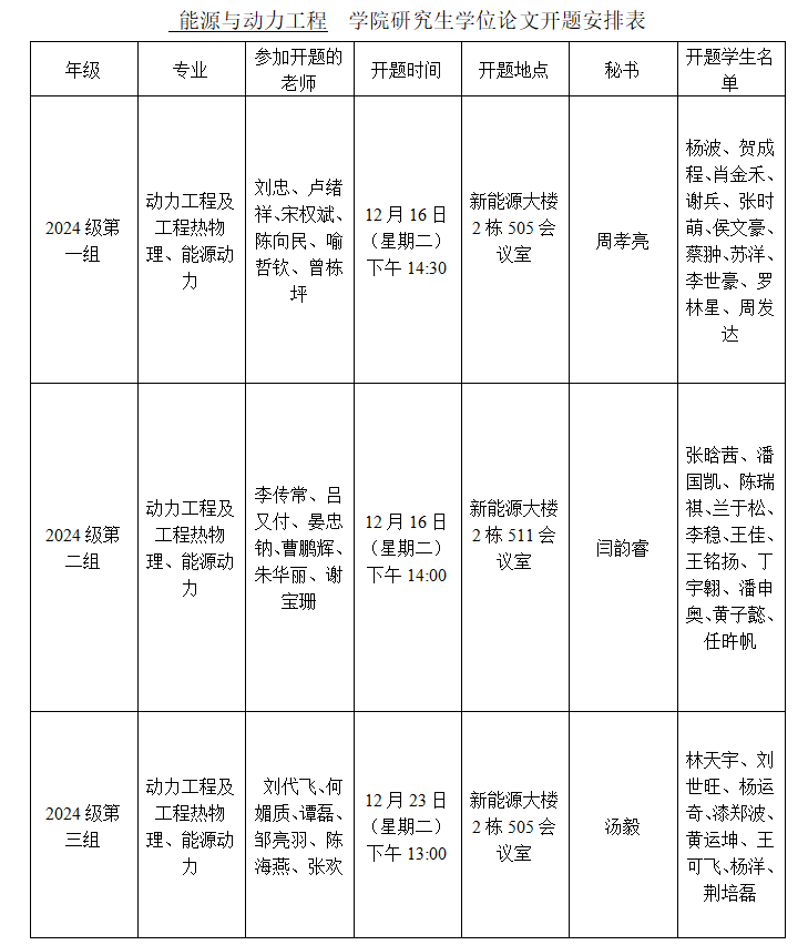能源与动力工程学院2024级研究生学位论文开题安排表