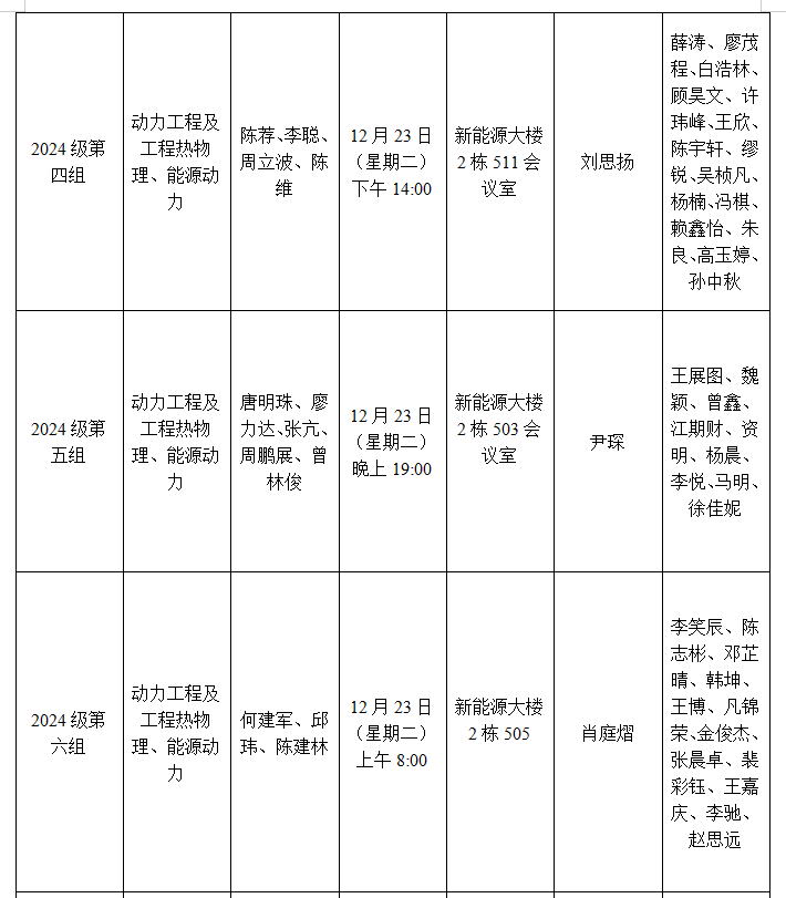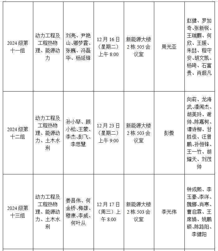 能源与动力工程学院2024级研究生学位论文开题安排表12.15.docx
