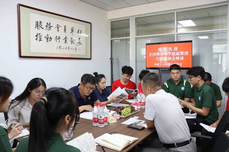 实践团首先来到内蒙古太阳能行业协会与会长温建亮进行深入探讨。温会长从内蒙古太阳能协会的创建时间说起,向队员们讲述协会的发展历程和基本概况。作为中组部团中央第17、18批援藏博士团成员的赵老师结合内蒙古和西藏能源发展特点、现状分析了两地区能源发展趋势,并鼓励队员们将来要投身奉献于能源发展中。