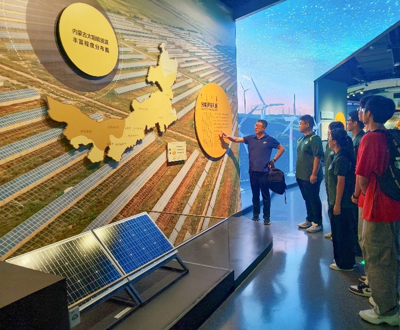 为进一步了解内蒙古太阳能、风能的分布情况,实践团来到了内蒙古自然博物馆参观学习。在赵斌老师的介绍下,实践团成员了解到内蒙古太阳能与风能发展的巨大潜力。同时,赵斌老师鼓励实践队员们培养多角度思考问题、多方向解决问题的思维模式,唯有在思维上突破,才能实现技术上的突破。