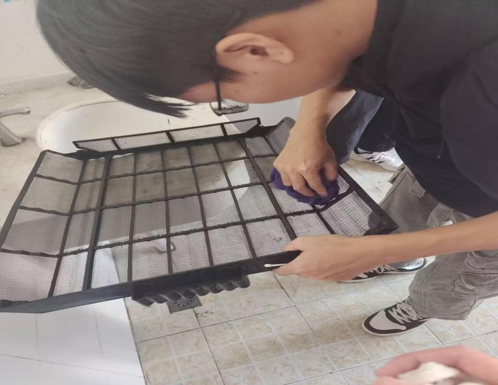 在接下来志愿活动中,志愿者们按照培训的操作方法:断电、打开空调外壳、拆卸滤网等步骤对新能源大楼各办公室进行了空调清洗,并对服务对象进行三分钟的双碳知识宣传。志愿者在活动过程中的严谨细心和贴心服务赢得了服务对象的一致好评。