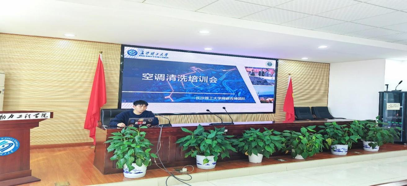 降碳青锋”团队主要负责人吴家樑在新能源大楼二栋502会议室对参与的志愿者进行了培训,他介绍了“降碳青锋”志愿服务团的相关工作,从空调清洗、双碳宣传再到深入企业进行节能降碳增效行动,同时也说明了在空调清洗过程中进行三分钟的双碳知识宣传对于践行双碳理念的重要意义。