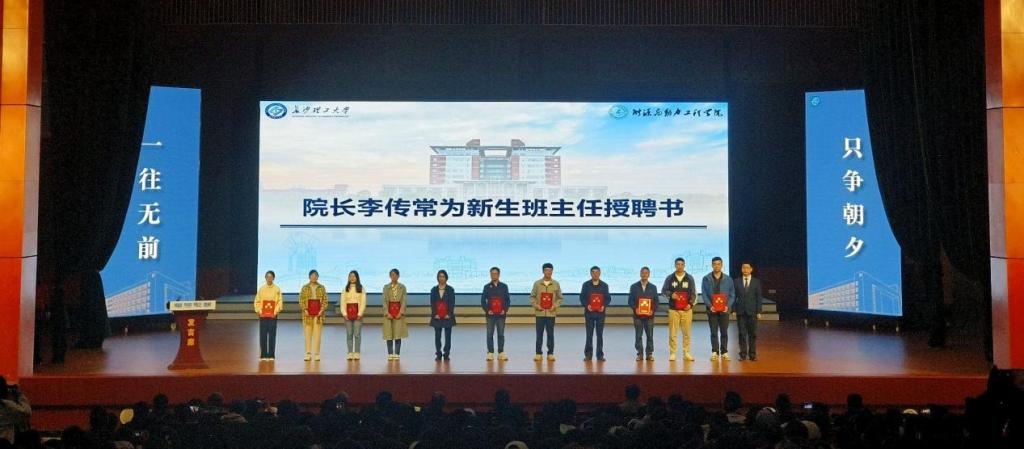 典礼最后环节,李传常为全体2024级班主任颁发聘书,副院长彭卓寅、关工委副主任顾社民为优秀下班干部授证书,军训负责人代表为全体教官献花。