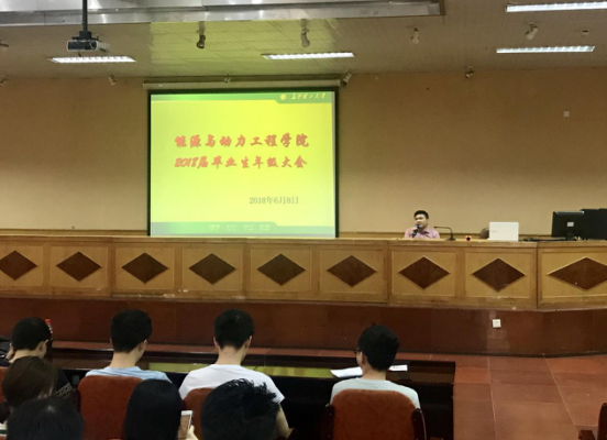 6月8日上午,能动学院2018届毕业生年级大会在四教报告厅召开,院领导杨雪峰副书记,全体2018届毕业生参与本次大会,2014级辅导员胡琳琳老师主持。