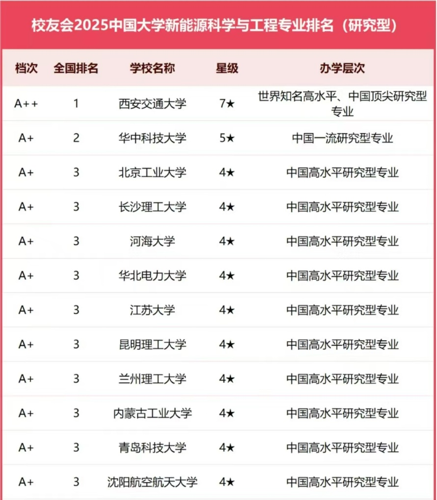 中国校友会榜单显示,william威廉中文官网位居2025中国大学新能源科学与工程专业排名(研究型)第四名