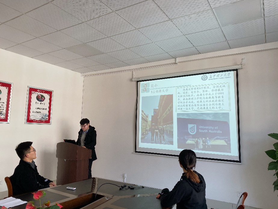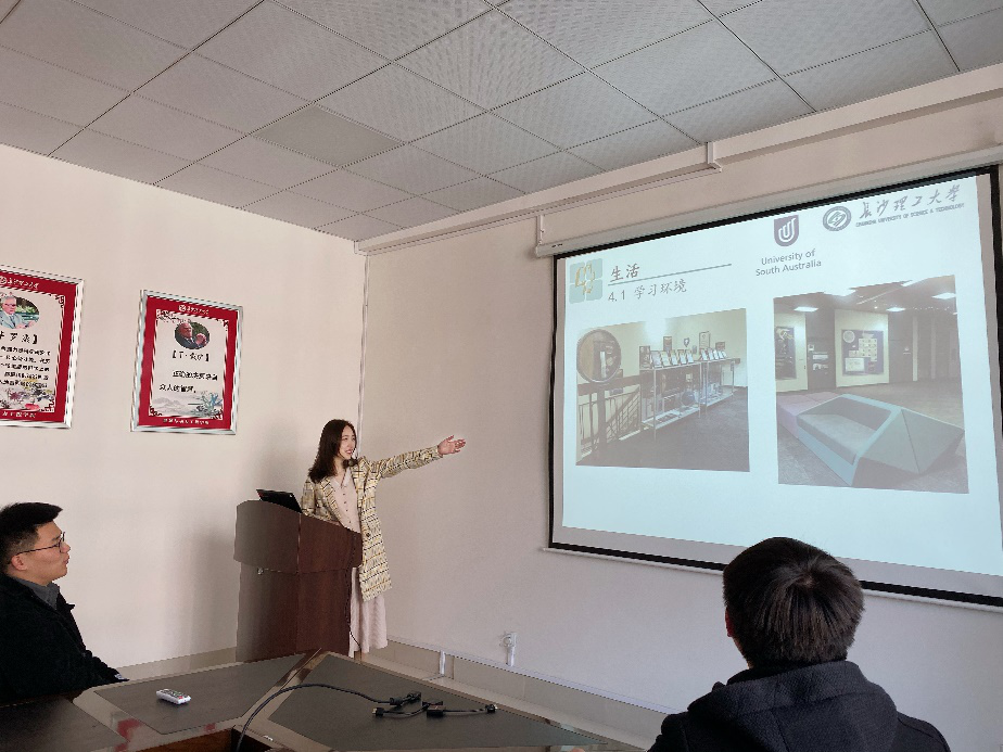 交流会伊始,陈茜同学为大家分享了外方邀请信、签证的准备工作,介绍了阿德莱德和南澳大学的相关情况。南澳大学(University of South Australia,简称UniSA)位于阿德莱德市,是澳大利亚五所主要的理工大学之一, 2020年QS世界大学排名中位列第247名。该大学是南澳最大的大学,学生总数近32,000名,其中的9,000名留学生来自于海外80余国,紧接着介绍了在南澳大学的课程情况。