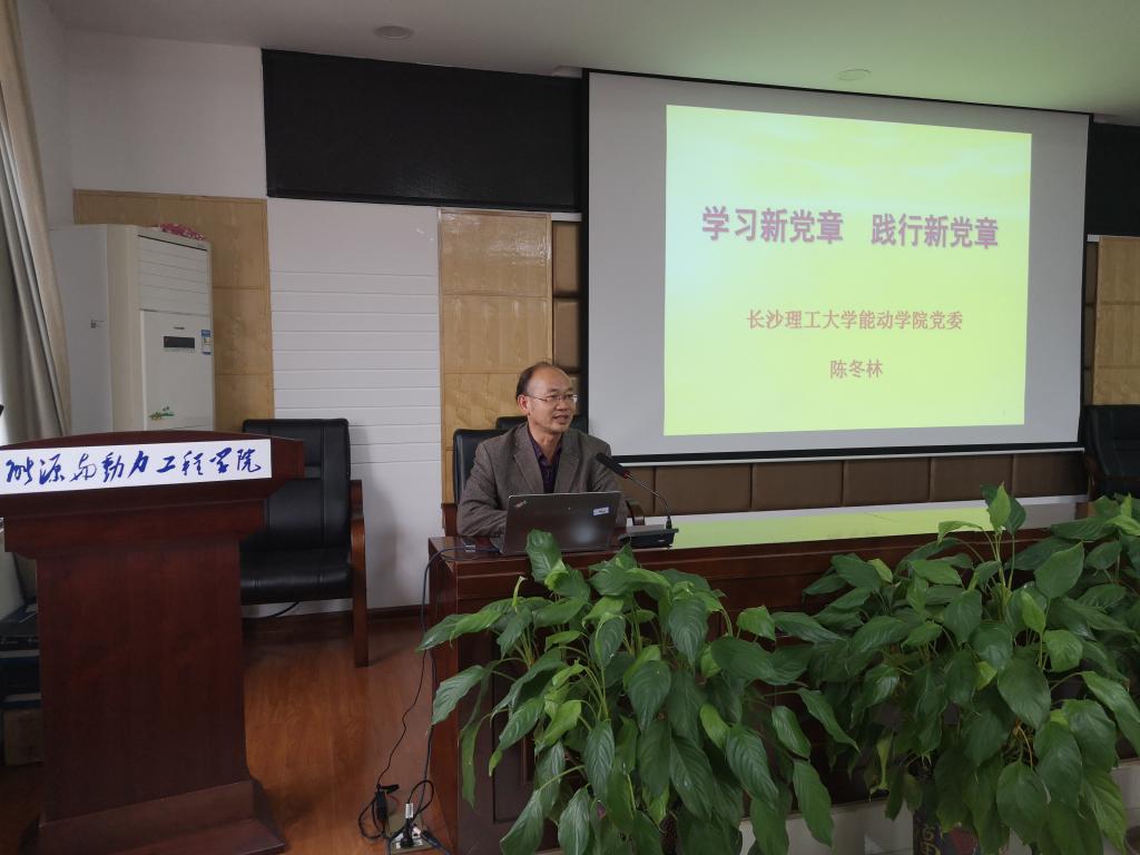 根据学院“不忘初心,牢记使命”主题教育工作安排,10月22日下午,院党委书记陈冬林在新能源大楼2号楼502会议室为全体教工党员、部分学生党员讲授“学习新党章,践行新党章”专题党课。