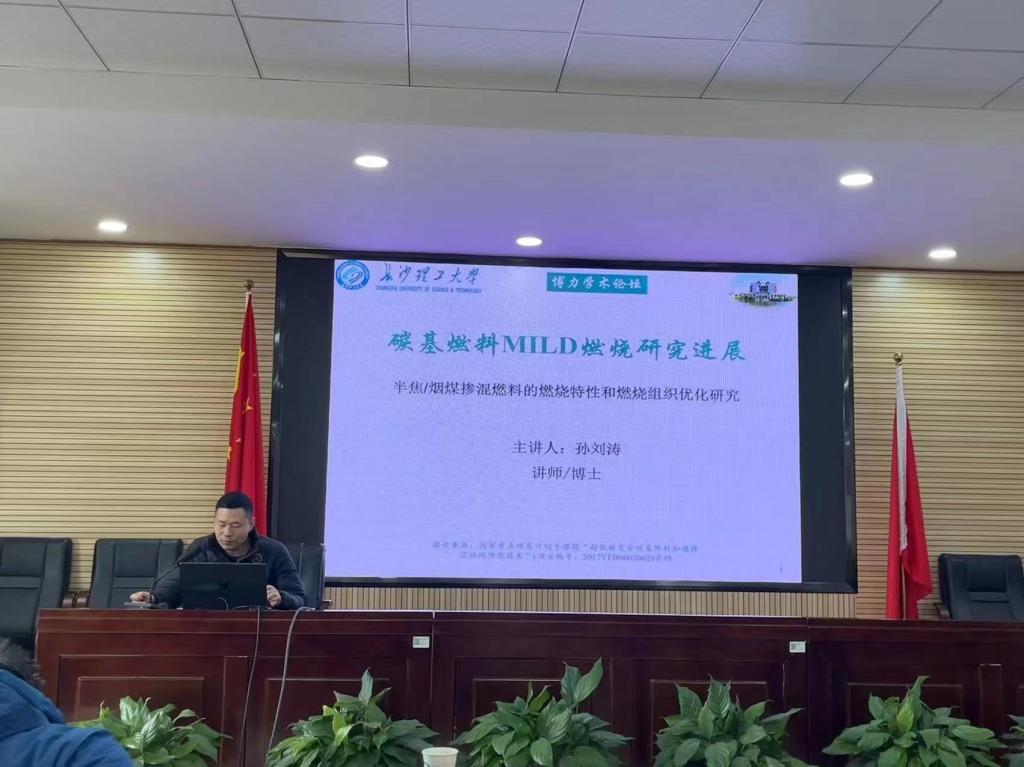 孙刘涛以《碳基燃料MILD燃烧研究进展》为主题做了汇报,主要从MILD燃烧技术和研究现状、实验系统、数值模拟方法等方面进行说明。他研发出新型强稳燃直流浓淡燃烧器,并对其燃烧组织进行深度优化,借助MILD燃烧思想提出浓淡煤粉的准无焰分级燃烧组织方式,并以此揭示燃烧机制及宏观、微观燃烧特性。
