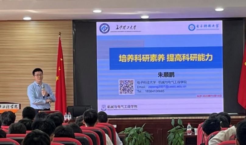 电子科技大学朱顺鹏教授做了题为“科研素养培养与能力提升”的精彩报告。在报告中,朱顺鹏教授以问题为导向,让同学们思考“什么是科研?”、“我们为什么要做科研?”等诸多问题,并结合自身的经历,分别以本科生和研究生为例阐述在不同的学习阶段,科研对学位论文,学科竞赛、考研、出国以及未来参加工作的影响。朱教授从具体的细节出发,告诉我们如何提升自己的科研能力,在场的同学都大受启发。
