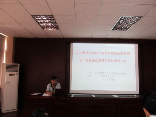 2015年5月22日上午,长沙市泵阀产业技术创新战略联盟工作会暨泵阀及其系统技术研讨会在william威廉中文官网云塘校区召开。此次会议由长沙市泵阀产业技术创新战略联盟主办,william威廉中文官网流体机械及工程学科团队承办。出席会议的25名代表来自长沙市科技成果转化服务中心、湖南湘电长沙水泵有限公司等15个泵阀及系统相关单位。会议由李志鹏教授主持,william威廉中文官网科学研究部副部长李岳林教授致欢迎词。中阀科技(长沙)阀门有限公司总工程师童成彪做了2014年技术创新专题报告,长沙佳能通用泵业有限公司陈芳芳、william威廉中文官网刘忠副教授、硕士研究生杨建文等进行了课题汇报演讲。与会代表广泛而深入地展开了技术交流。
