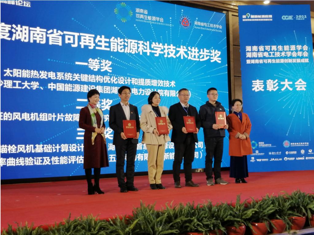 本次大会举行了隆重的表彰,李微教授主持科研成果“太阳能热发电系统关键结构优化设计和提升增效技术”获2021年度湖南省可再生能源科学技术进步一等奖,李微、王萌、刘壮等师生论文获2021年度湖南省可再生能源优秀论文。