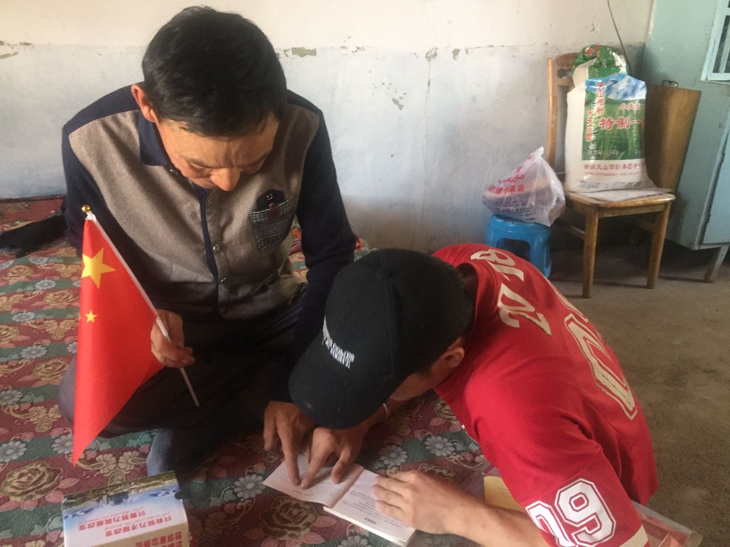 吐苏莱汗用哈萨克语说:"很高兴村委会安排一个有知识的大学生来给我讲解法律和党的新政策”,吐苏莱汗没上过太多的学,他的四个孩子们都在外面打工,家里常年就他一位在,汉语说的也不是很好,因为语言的障碍,导致他对一些法律的认识和理解有误差,需要麻烦左邻右舍来帮助理解和消化一些新出的政策和法律知识,“现在好了,村委会安排了几个大学生来家中讲解法律知识,对于我来说,方便很多。很高兴生活在五星红旗下!"
