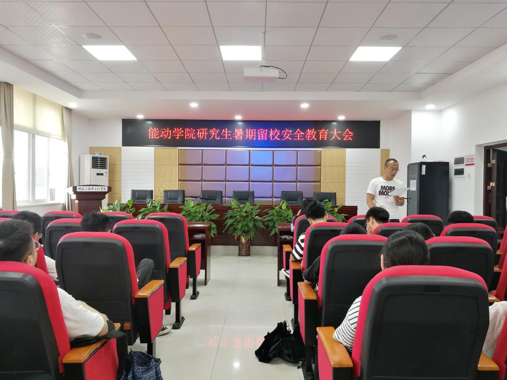 7月9日上午,能动学院于新能源大楼2栋502室召开研究生暑期留校安全教育大会,学院党委副书记杨雪峰、研究生辅导员胡琳琳以及留校研究生参加此次会议。