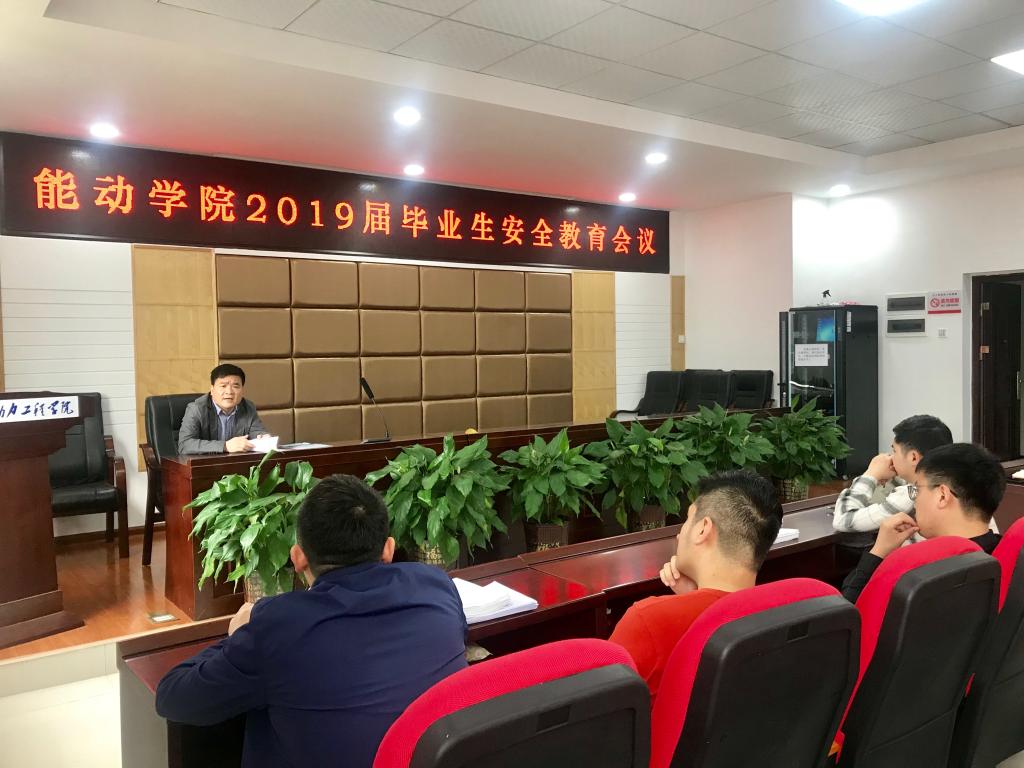 2019年5月21日,能动学院在新能源2号楼502室召开毕业生安全教育工作会议,会议由15级辅导员彭博老师主持,院党委副书记杨雪峰、毕业生班主要学生干部参加会议。