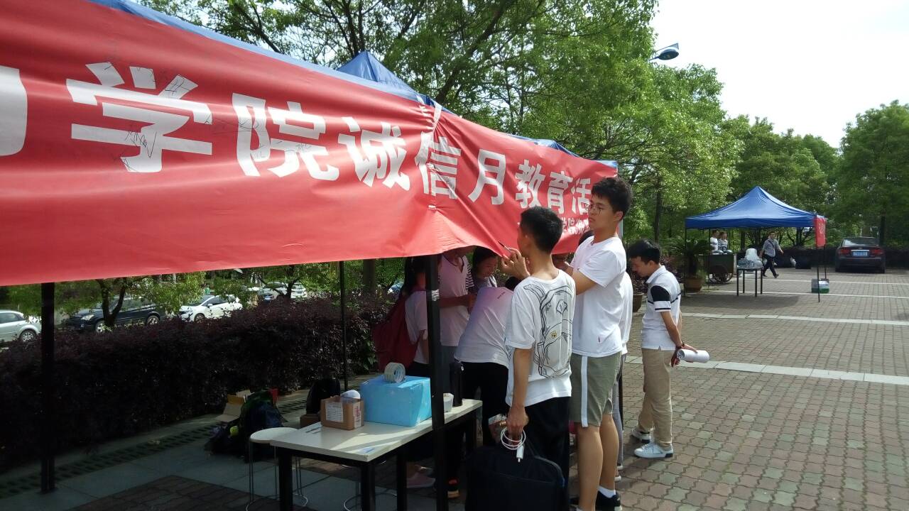 为增强学生的诚信意识,能动学院于5月15日在甘怡园前坪开展诚信教育活动。本次活动在学院资助辅导员汪华丽指导下,由学生资助部具体负责实施,包括“诚信无人售卖”和“诚信室外游戏”两个部分。