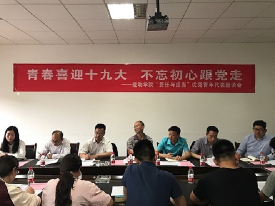 5月4日下午,能动学院纪念中国共青团成立95周年暨“责任与担当”五四青年节座谈会在工科一号楼A-422会议室召开,院党委书记陈冬林、院长陈荐,副院长鄢晓忠、刘忠,学工办李小军,分团委书记刘玉亭以及13名优秀学生代表参加座谈会,会议由院党委副书记田向阳主持。