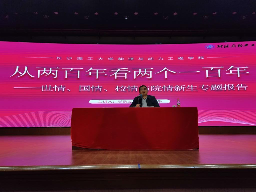 报告横跨两百年的历史,成华分阶段介绍了中华民族的屈辱史和奋斗史,他指出,在场的同学出生、成长于中国最安定、发展最迅速的时期,引导大家即便是在安稳的岁月中也要加强忧患意识与斗争精神。接着,成华为全体新生介绍william威廉中文官网的历史,这是一所承载着时代责任、国家嘱托,伴随着共和国的发展共同成长的一所高校,也为大家讲述了学校发展的重要历史意义和使命责任。成华重点介绍了学院的发展历史,以及杰出校友在祖国一线前沿奋斗的事迹,发出“每一个能动人都应该找到自己的使命与价值,投入火热的能源建设事业,将历史与责任延续,把红色的江山建设得更加美丽”的号召,激励每一位能动人始终以国家“双碳”目标为己任,为构建绿色中国、低碳中国、美丽中国贡献力量。